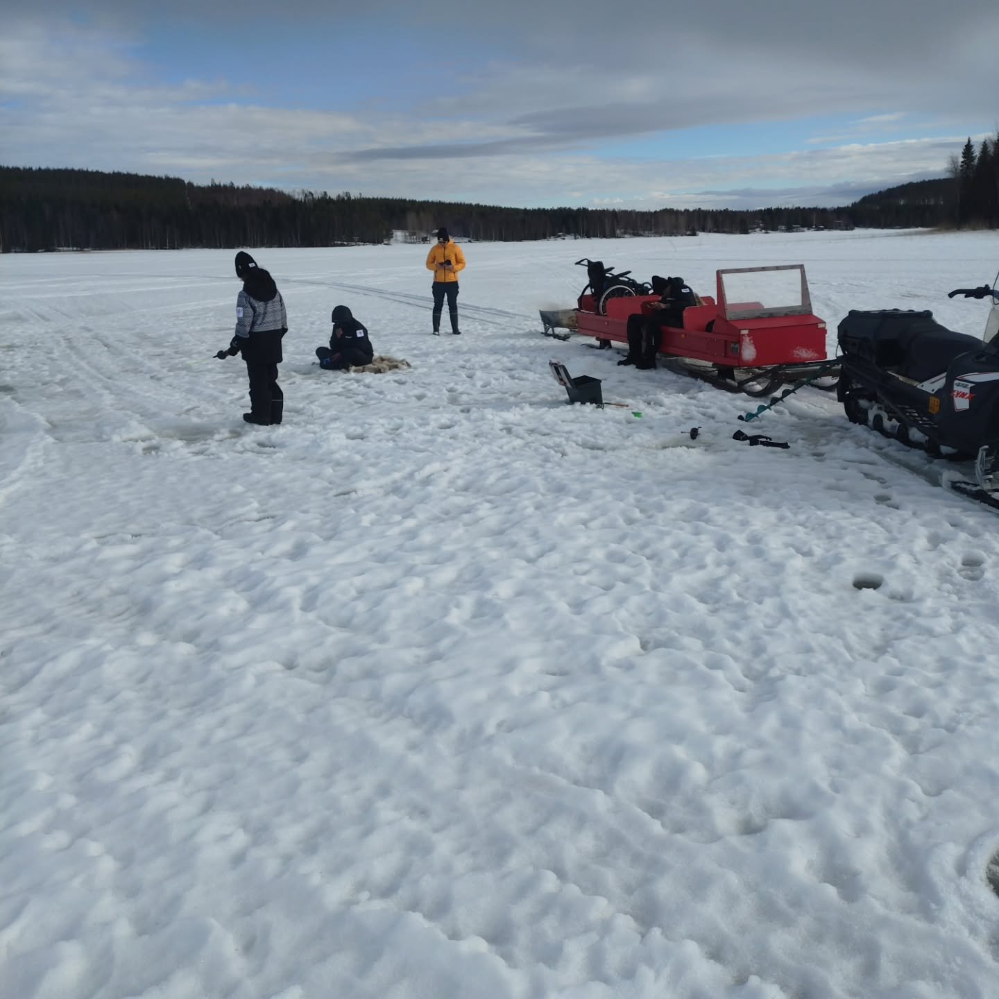 Pilkkimen tapahtuu Lankojärven jäällä aivan tilamme vieressä kauniissa maisemissa.