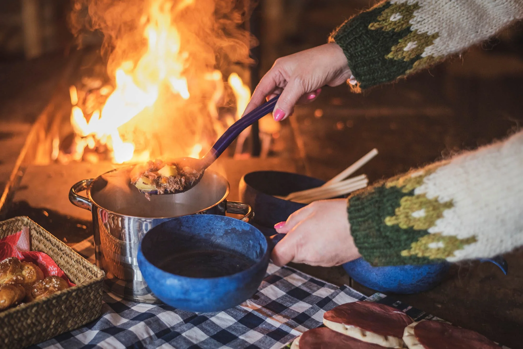 Lämpimässä kodassa nautit lämmintä juomista, poroleivän, tai keittolounaan.